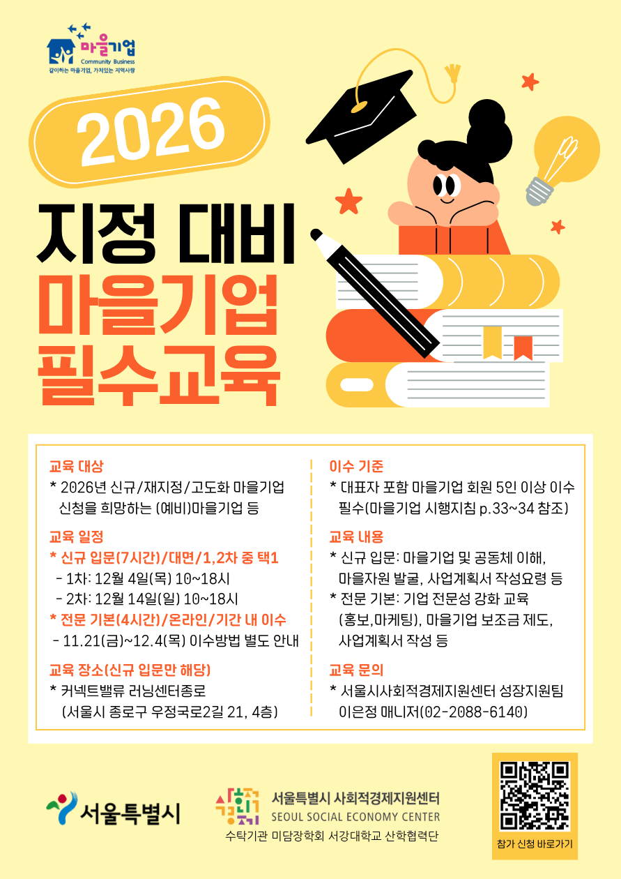 <2026년 지정 대비 마을기업 필수교육 개요>